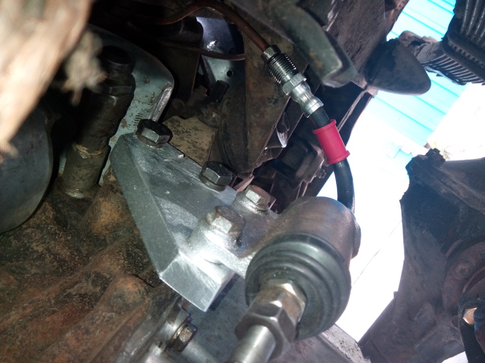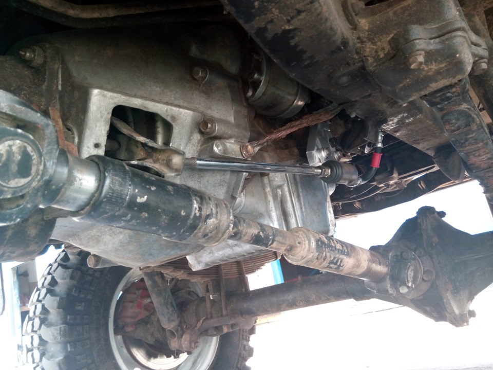 SI Group написав:Недавно был на покатухах и при дерзкой езде по склонам и ухабам вылез косяк… При больших прыжках на машинке передний кардан достал до вилки выжимного и отбил рабочий цилиндр сцепления… Перепробовал и передумал много вариантов но остановился на следующем. Сперва укоротил вилку, потом сделал плиту для цилиндра и прикрутил её на держатель подушек двигла, сам шток пришлось резать длинный и крепкий, сделал его из штока амортизатора, там сталюка будь здоров. При монтаже стало все четенько, правда сцепление стало туговато, но зато оно есть… И расстояние к кардану около 30см, думаю что уж никак не достанет, а если даже это и произойдёт, то кардан пройдёт мимо…
