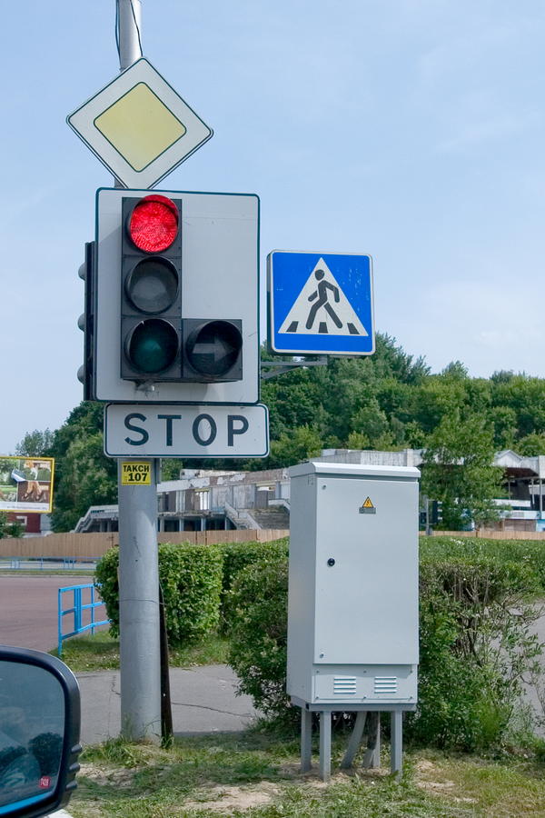 светофоры для лучшей видимости цвета на белых щитах (город Мозырь)