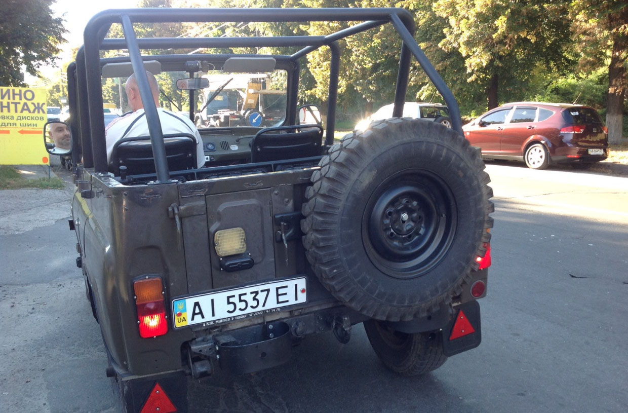 Тюнинг: каркас безопасности без внесений изменений в оригинальную конструкцию, кенгурятник, две фары искатели, новые рукоятки открытия дверей (хантер), новые зеркала (хантер), сидушки родные, перетянутые качественным материалом, рамки и ковши сидений отпескоструены, обгрунтованы и окрашены, защитные (военные) накладки на фары, пластиковые подкрылки.
