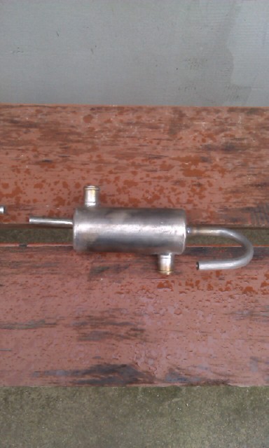 Могу изготовить и отправить в любой город данный прибор-проточный подогреватель соляры. Прибор прост и безотказен, вечный(так как изготовлен из нержавейки-12Х18Н10Т) и на 100% выполняет свои функции,у самого установлен на МПС и уже третий год работает. Два выхода большего диаметра-19мм запитываете тосол (в разрез патрубка на печку), на два выхода меньшего диаметра-10мм запитываете топливо (перед топливным фильтром). Когда ваш авто завёлся, первое что нагревается это-подогреватель , т.к. это практически самая верхняя точка, и подогретое через змеевик топливо поступает в топливный фильтр, исключая тем самым "запарафинивание", из-за которого происходят все беды с дизелями при низкой температуре! Топливо, практически с температурой тосола, поступает в фильтр,в топливную и затем в бак через обратку.И никаких присадок и керосина не надо добавлять в топливо. Одесситы могут посмотреть в живую на моём авто.