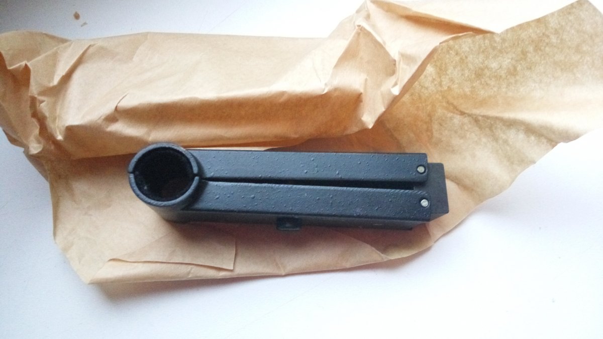 Аксессуар для крепления бинокля завода ЗОМЗ с центральной цилиндрической шарнирной осью к штативу. Актуален для биноклей большого увеличения.