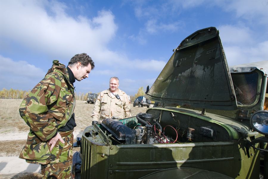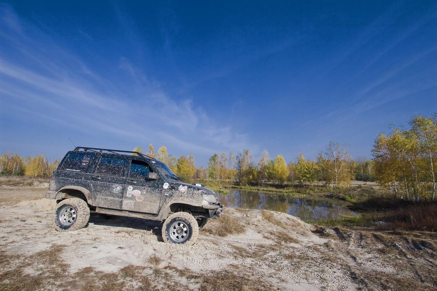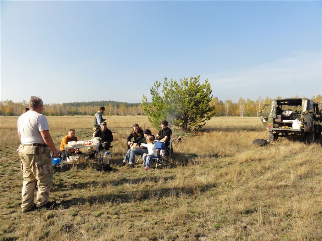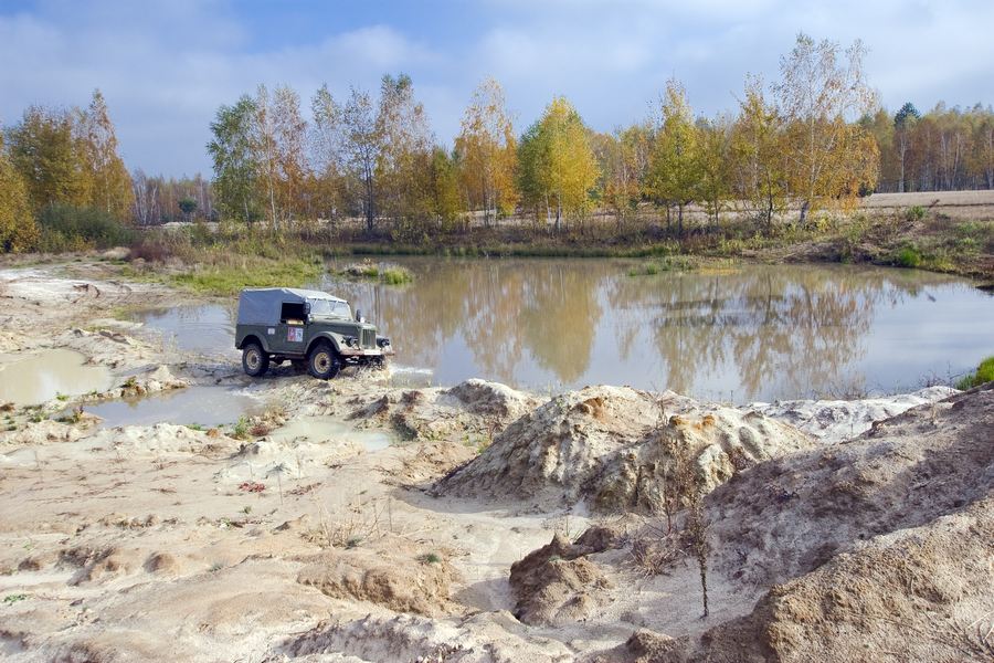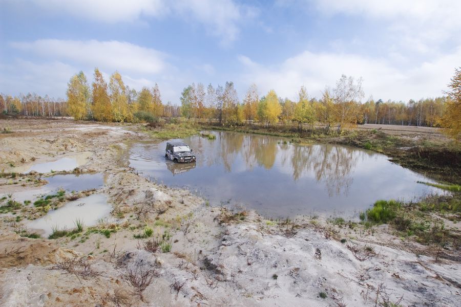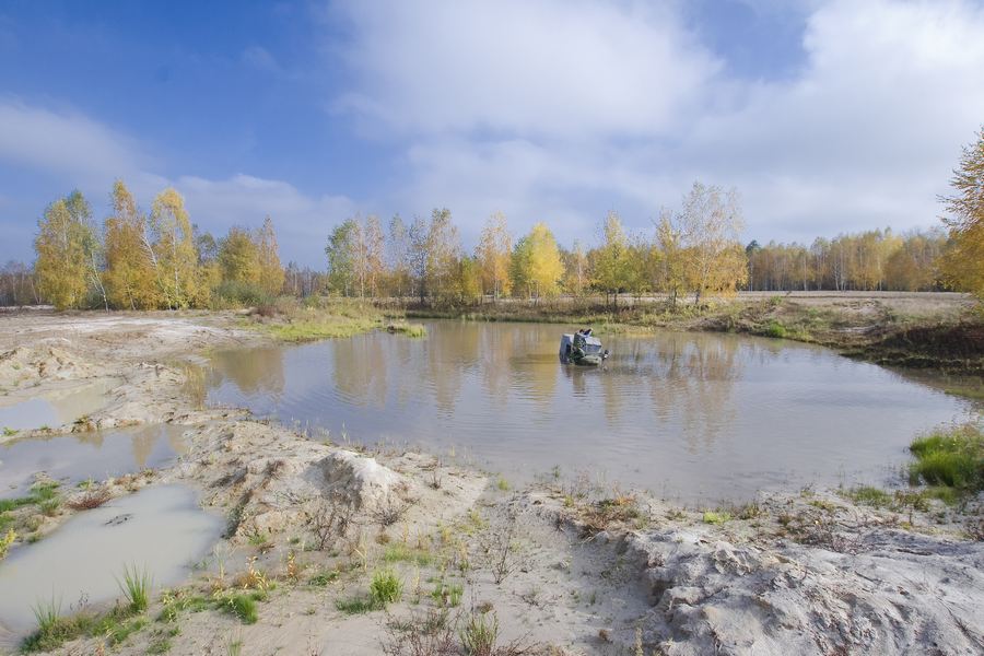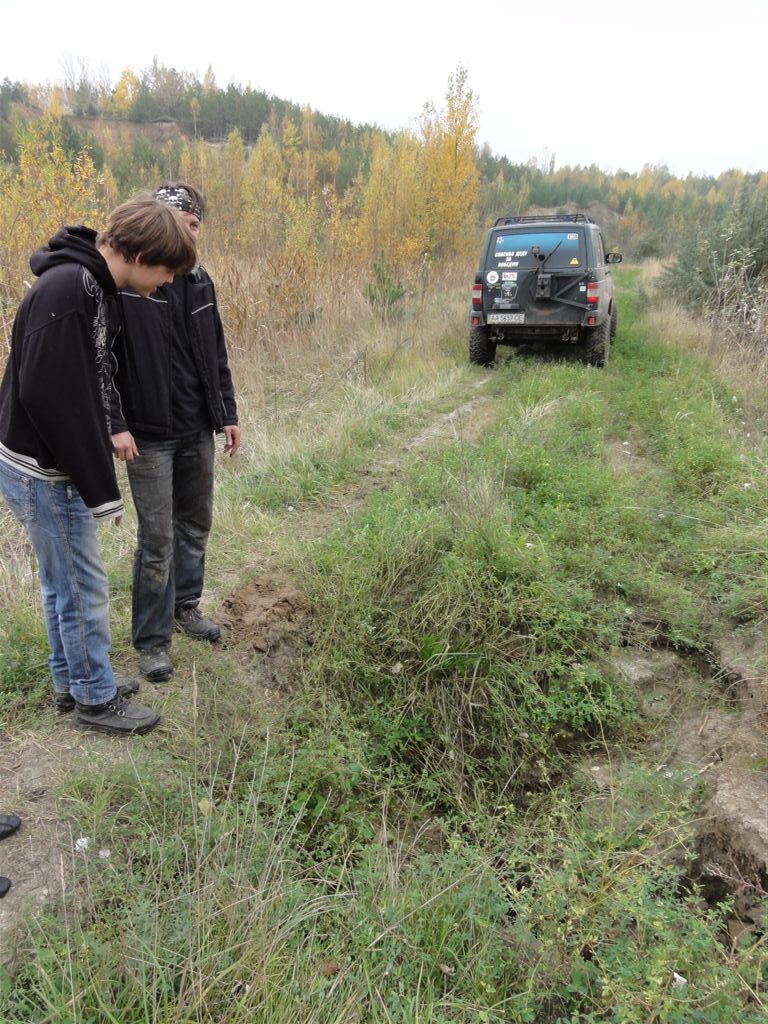 Первую часть разведки в предыдущие выходные мы достойно прохалявили, да не мы одни… Зато на вторую часть разведки явилось целых шесть экипажей: мы, Олекса, Катюха, ГАЗончик, Безвыходный и новенькие. Поехали смотреть по заранее намеченным местам. Перемежалось это конечно как обычно какими-то возгласами: А поехали в Дымер, Дебальцево, шут знает еще куда… Но опытных следопытов так просто с заданного направления не сбить. Задачей было найти такое место, чтобы и пол сотни машин разместилось без проблем и ландшафт для триала был зачетный. Ну как просто приехать посмотреть и всё? Нет, это неправильно, не спортивно и не по регламенту. Найти место подальше, лужу побольше, заехать поглубже и лебедиться до посинения… синело в нашем случае небо, утром была мряка, а день порадовал солнцем. Три недокарьера в районе Гостомеля.