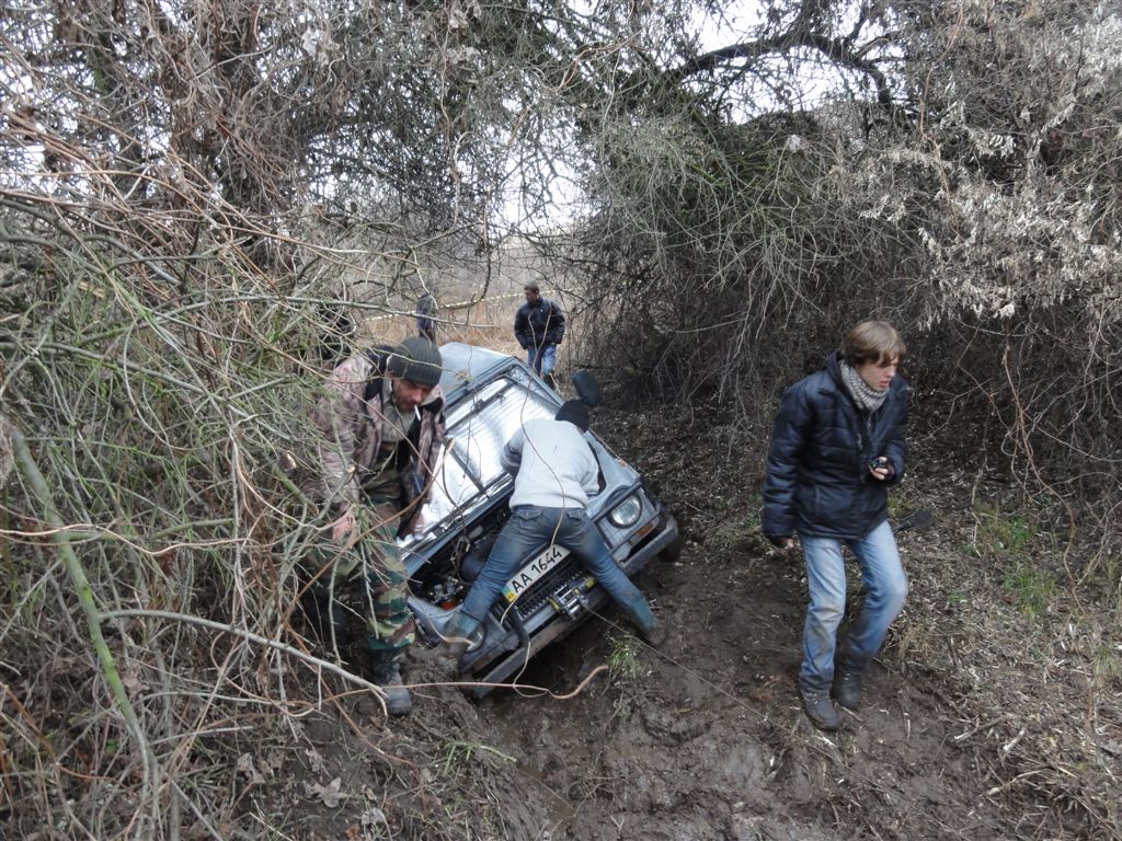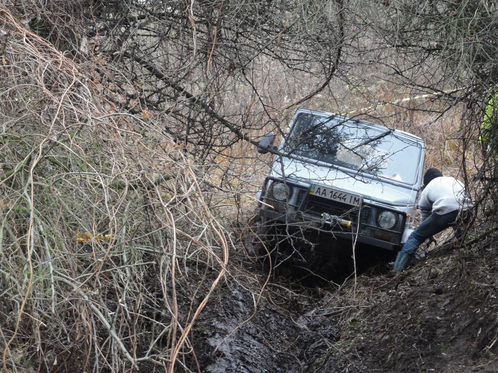 Екіпаж 77 (червона Нива на 32" колесах) не дав себе сфотографувати, не засівши на ділянці й не давши мені спуститися з гори.