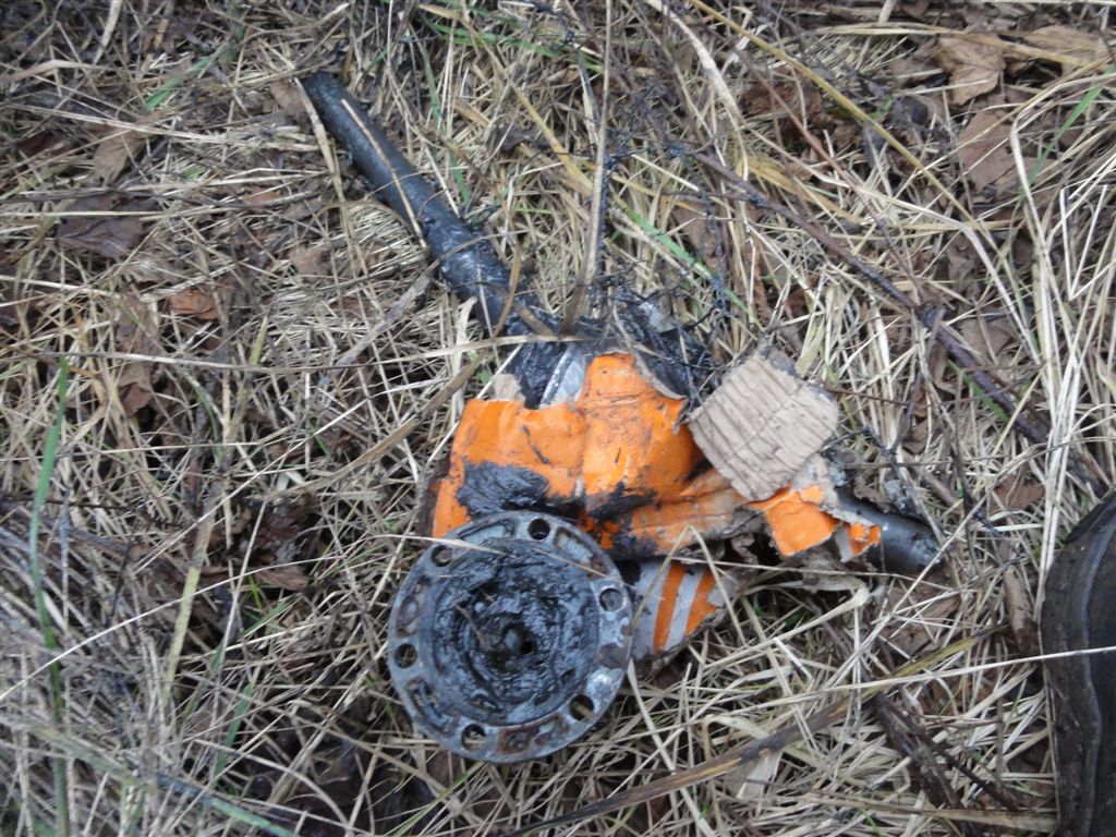 І як ви думаєте, чи порвалася врешті решт оранжева буксирувальна стропа? Правильно, порвалася! Розірвалися нитки і відірвався один гак. На щастя, вся конструкція не вистрелила (стропу було складено вдвічі, можливо, просто трошки не симетрично, і на один гак навантаження було більшим, а зісмикнутися з дерева вона швидко не змогла). Але вже можна було завести в якости корозахисної стропи другий текстильний буксирувальний трос. Екіпаж пройшов ділянку!