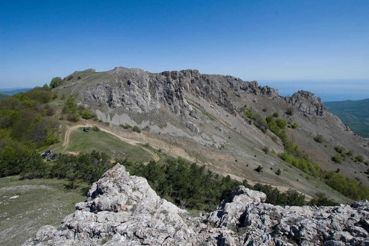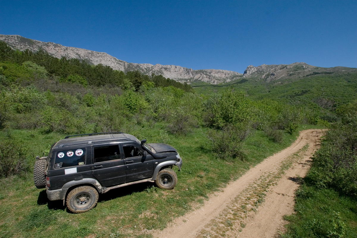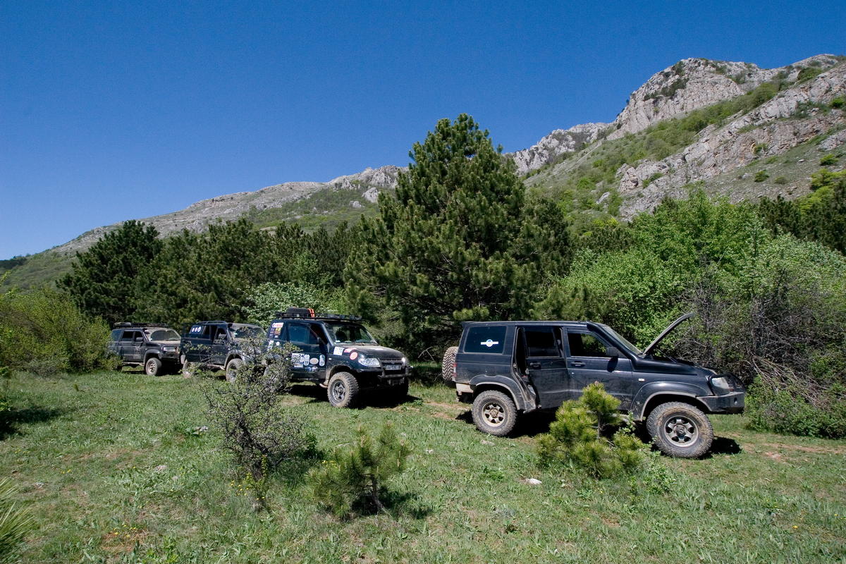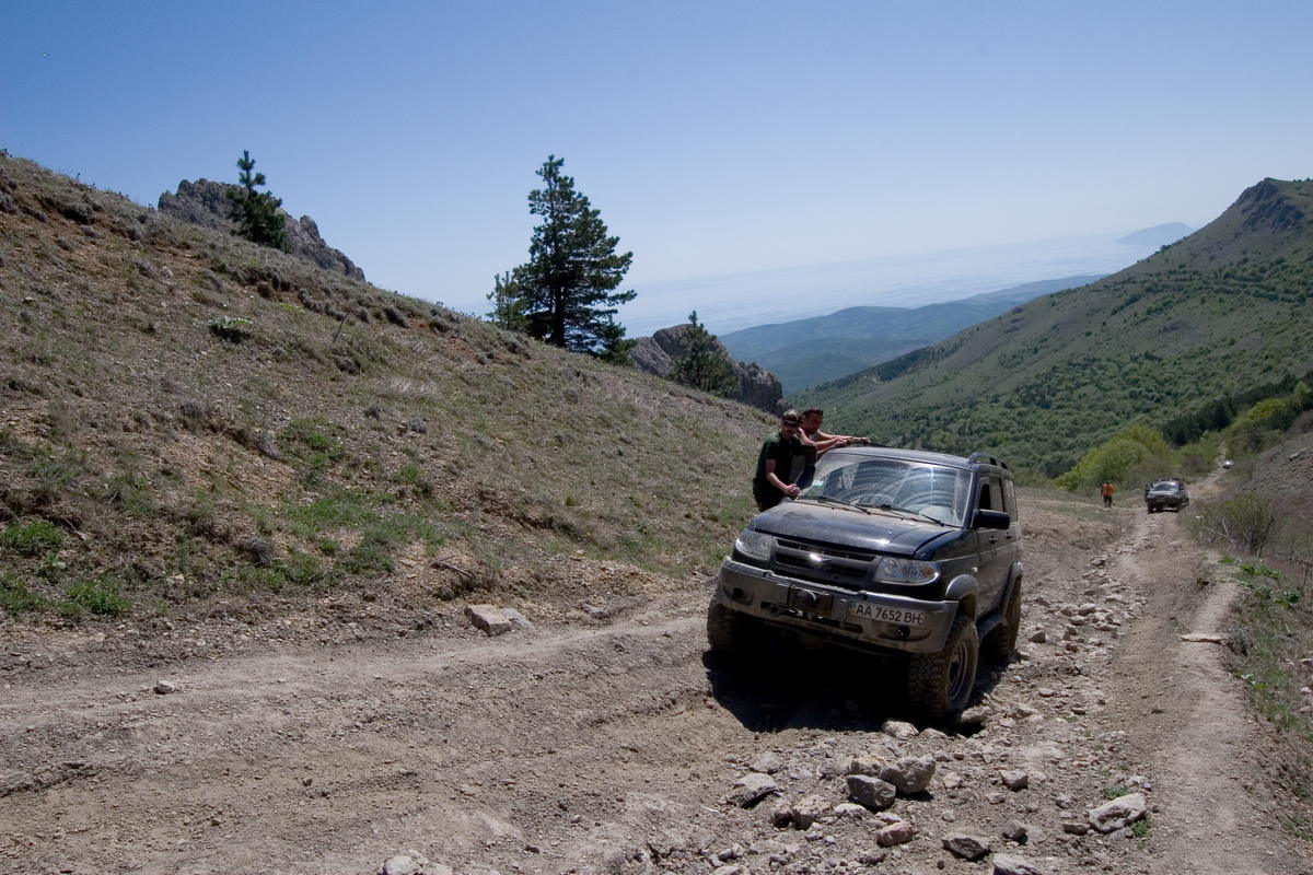 Сидели мы там сидели и досиделись до звонка достопочтимого Петра. Пересеклись мы с нашей второй группой Петя, Симбиряка, Экспедиция и забавный китаец и поехали дружно и весело во главе с Кубиком и бегущим перед его машиной Петром по Караби-Яйле.