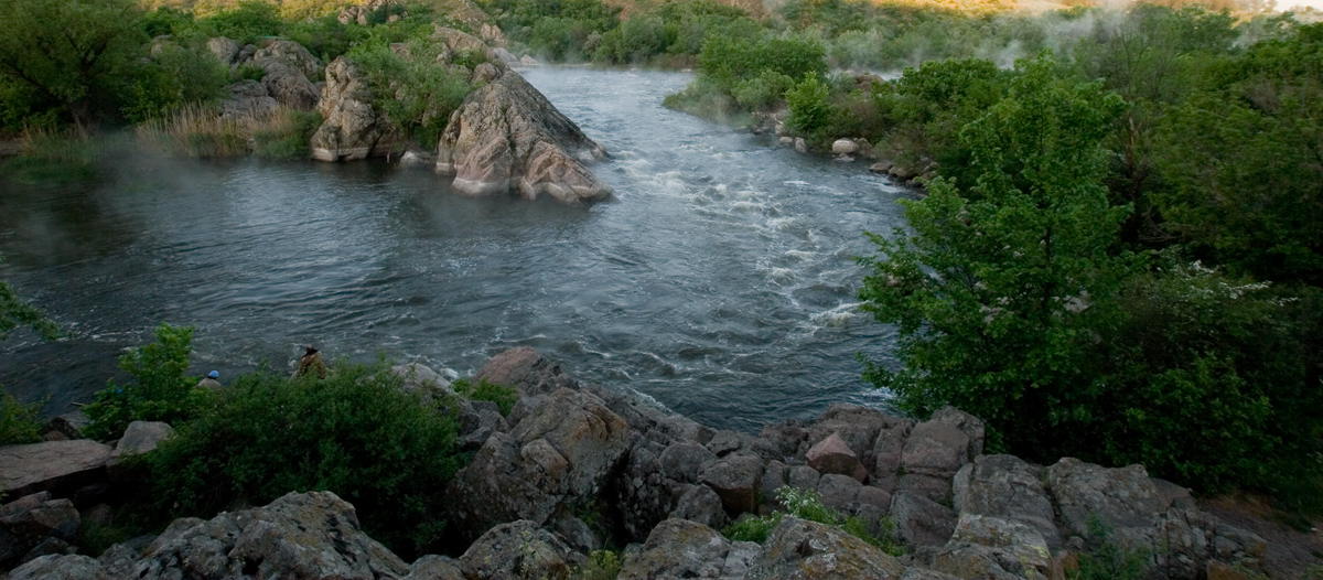 такой утром туманище над бурлящим потоком у порогов