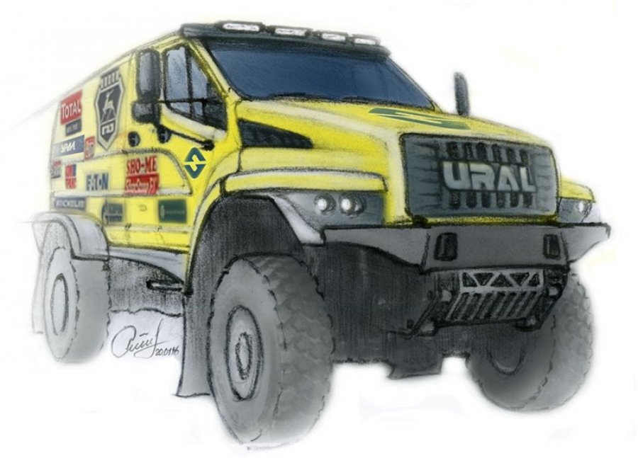 Позже в процессе обсуждения того, каким будет гоночный "Урал Next" (и будет ли вообще), выяснилось, что эскизы и техническое задание на машину якобы уже есть. При этом оказалось, что кабина у грузовика двухрядная, место механика расположено позади пилота и штурмана и что вообще это не "боевой" автомобиль, а "техничка", то бишь машина технической помощи.