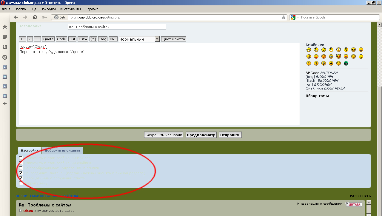 Не совсем, наверное, получилось... Но суть ясна - на шкуре uaz-club в разделе "Пользователи" не видно текста (выделено). То же при написании ответа на вкладках "Настройки" и "Добавить вложения".