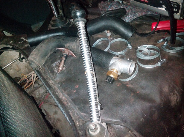 С трудом установил вентилятор, потому что при обжатии его к дифузору, лопасти зажимало, все решили пару хороших ударов молотком по стальному кольцу защиты вентилятора... :lol: :lol: был установлен бензонасос ( при покупке патрубков помните что вход в насос патрубок d-10mm, а выход d-8mm, ну может и не у всех.... не знаю...) также поменяли все патрубки на новые, установили датчик вентилятора на верхнем патрубке, даже прифигачили расширительный бачек :D :D :D Единственное чего не сделали это не подключили патрубком маслянный радиатор, оказывается переходник нужно точить самому (сегодня был на авторынках вереснева, перова, барохолках дарницкого рынка и юности) ...... :evil: :evil: Пипец, такое впечатление что народ торгует ширпотребом... И все в один голос на всех рынках сказали что такого не найду :shock: :shock: :shock: Я реально в шоке...... Думаю что когда наша страна докатется в реальную Ж :roll: пу, то открою точку по всевозможным штуцерам и переходникам, а лучше возьму пару станочков и буду их делать на месте под заказ за очень БОЛЬШИЕ деньги. Потому что я реально готов был сегодня заплатить за него много!!!!! Но звонок знакомому токарю и мотористу в одном лице, на корне сбил мой пыл, когда услышал ответ не спеши приедь в понедельник я те все сделаю за спасибо!!!!! Вот так и сделал.... Приехав в бокс после трех часовых скитаний, заглушили нахер этот маслянный радиатор, залили водичку в систему охлаждения и покотились на холодном запуске к чуваку который сказал что сделает мне за монетку ИНТЕРЕСНЫЙ выхлоп :?: :?: