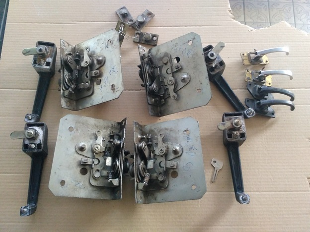 Продам установочный комплект дверных замков с ручками Хантер б/у. Механизмы в хорошем состоянии, не раздолбаны. Требуют окраса. В комплекте не хватает четырех тяг, они делаются по месту из тройки электрода. Еще нет двух пластиковых ручек запирания двери изнутри. В общем на фото все видно. Цена 700 грн, отправка после предоплаты. 0970355219