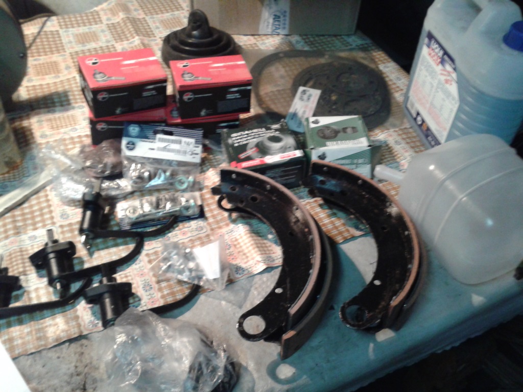 - заменены в переднем мосту- шкворни (подшипникового типа), установлены прокладки над шкворнями (их вообще не было, а нужны мне были),заменен сальник наружный с набивкой поворотного шара(если я правильно выразился),заменены прокладки (их небыло) между наружным сальником и поворотным кулаком (в том месте он 1), потом самой цапфы полуоси, свежая вкусная смазочка везде,промыты кабы да и все что надо было- отмыл от старой грязи песка и смазки.... периодически попадались и трава с фрифеста )) - не менял только подшипники- так как на них не было выроботки и задир и царапин и щербнутых мест- они остались и не половинил чулки...заменены тормозные колодки,установлены ранее выкинутые шайбы внутри тормозных цилиндров (теперь они самоподводящиеся и нге отводящиеся )