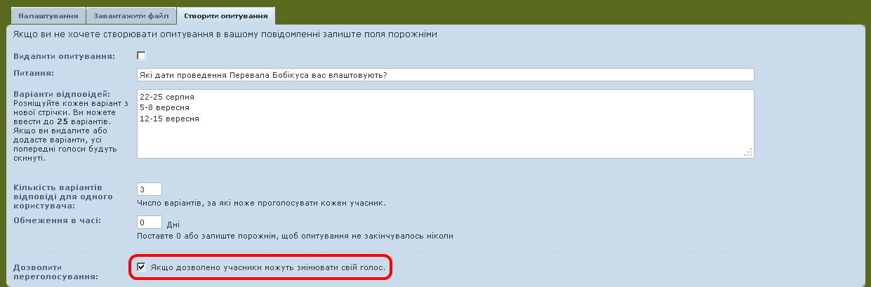 Наче, нічого особливого не робив, просто при вмиканні голосування увімкнув можливість переголосовування: