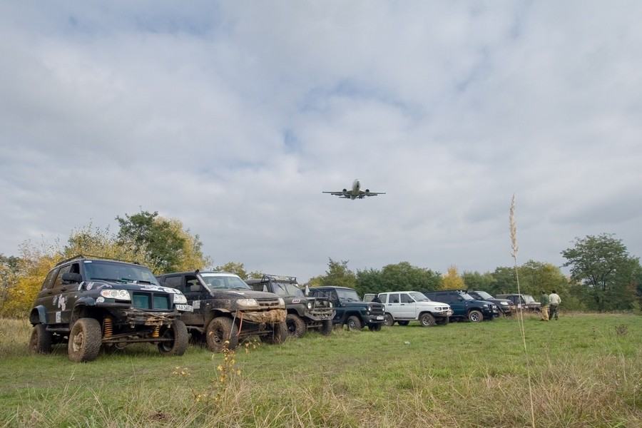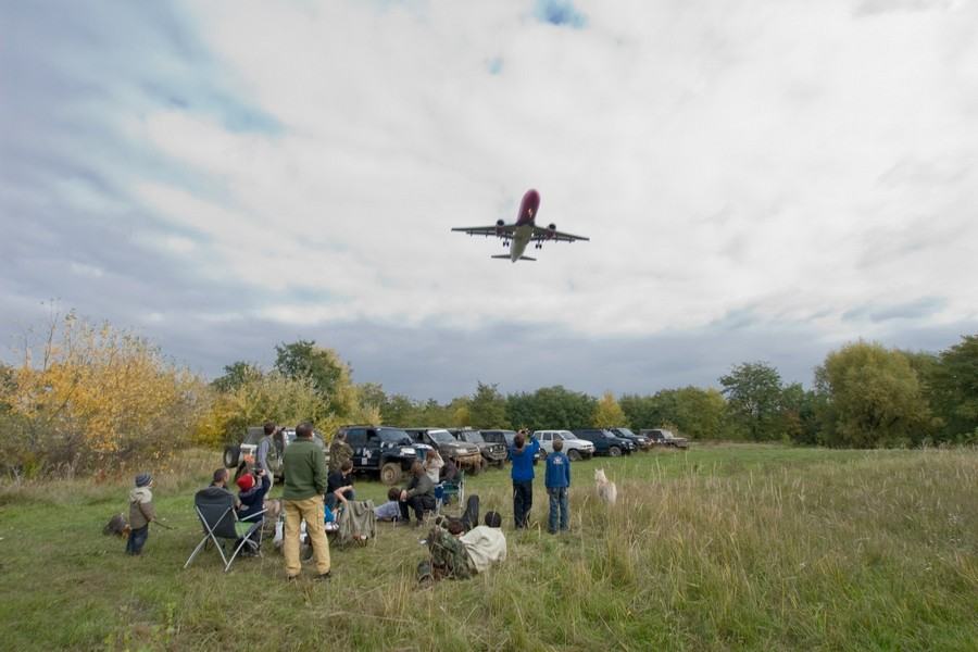 Вдоволь намесивши глинку мы поехали на уютную полянку возле аэропорта для продолжения банкета и услады желудков. Об этом месте хочется сказать пару слов отдельно. Какой ребенок в нашем советском детстве не мечтал стать космонавтом или хотя бы летчиком? какой мальчишка в детстве не хотел иметь самолет или хотя бы машину? последняя мечта у большинства присутствующих уже исполнилась, но замирание сердца от созерцания многотонных механизмов парящих над облаками все же осталось. Самолеты пролетали довольно низко, пару раз даже природная "аномалия" в виде воздушных локальных завихрений имела место, за чем с удовольствием наблюдали как дети так и взрослые.